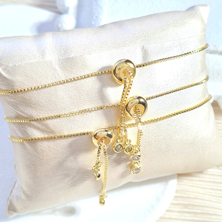 Pulsera en rodio con sistema ajustable, dije en forma de sagrado corazón