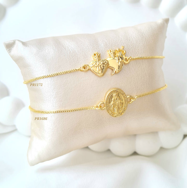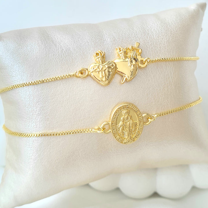 Pulsera en rodio con sistema ajustable, dije en forma de sagrado corazón