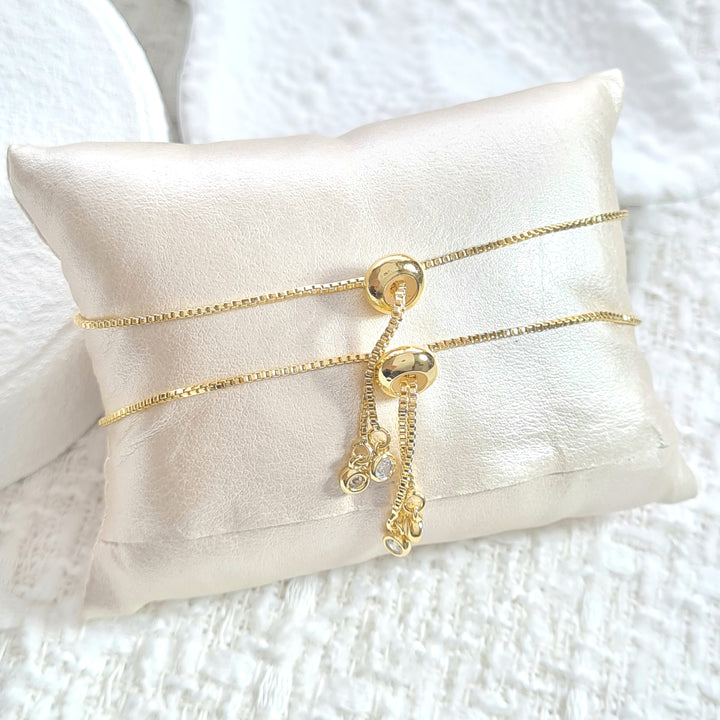 Pulsera en rodio con sistema ajustable, dije en forma de corona y detalles en zircones