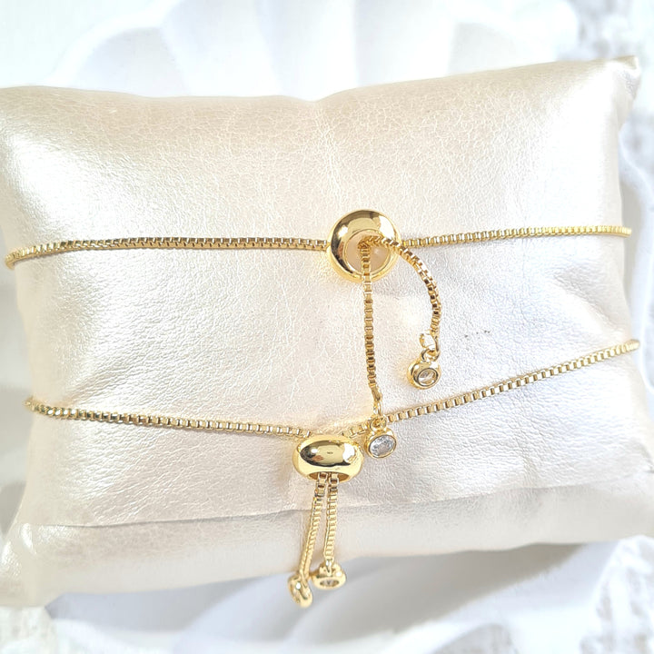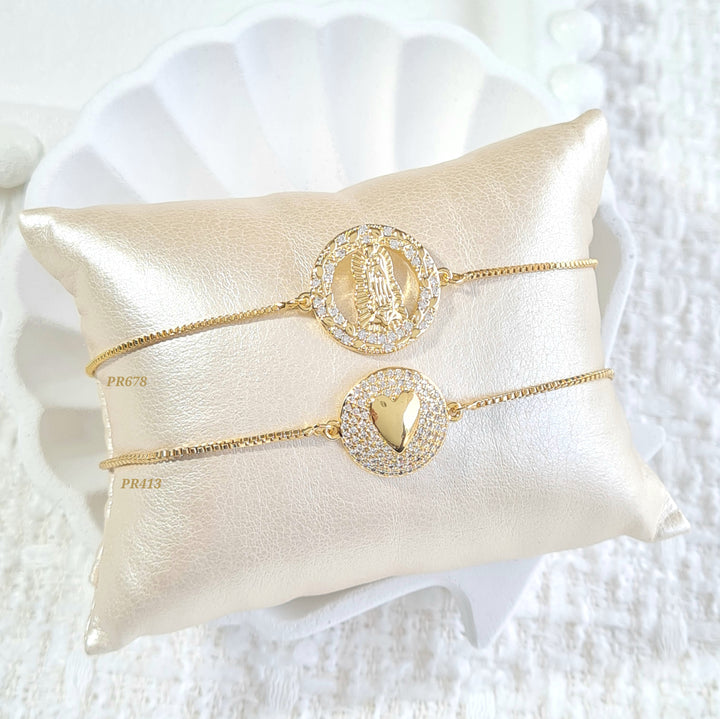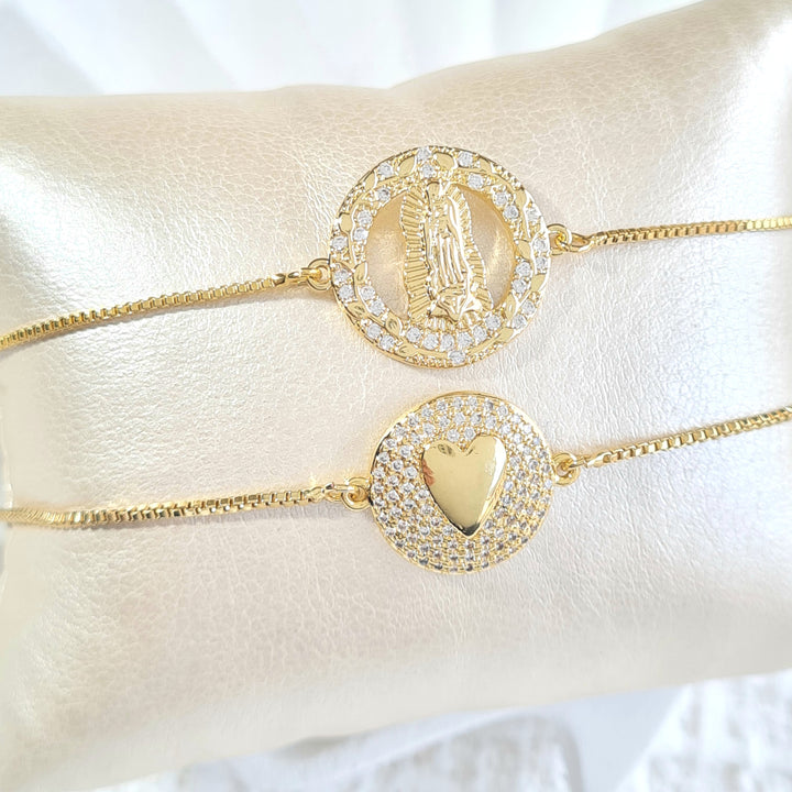 Pulsera en rodio con sistema ajustable, dije en forma de virgen