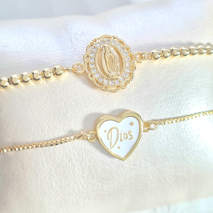 Pulsera en rodio con sistema ajustable, dije en forma de corazón y DIOS