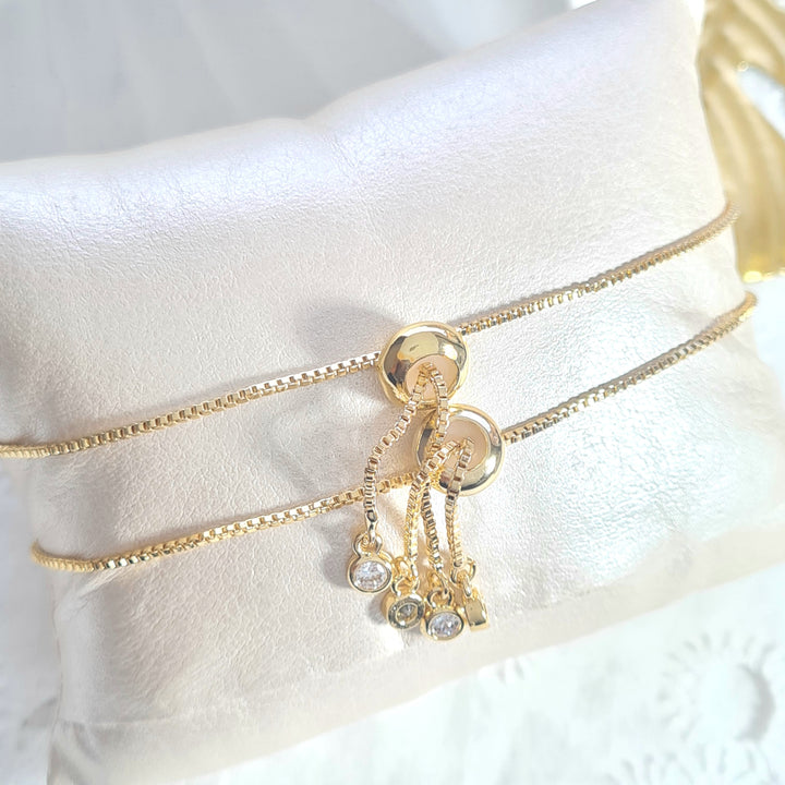 Pulsera en rodio con sistema ajustable, dije en forma de virgen