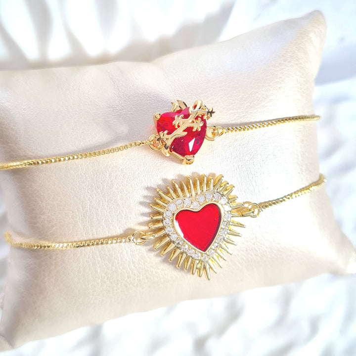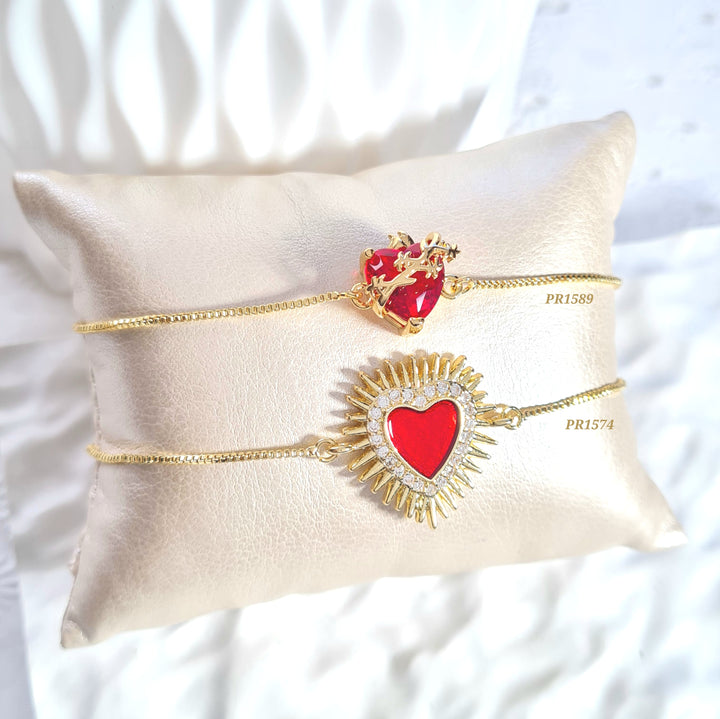 Pulseras en rodio, sistema ajustable con dije en forma de sagrado corazón