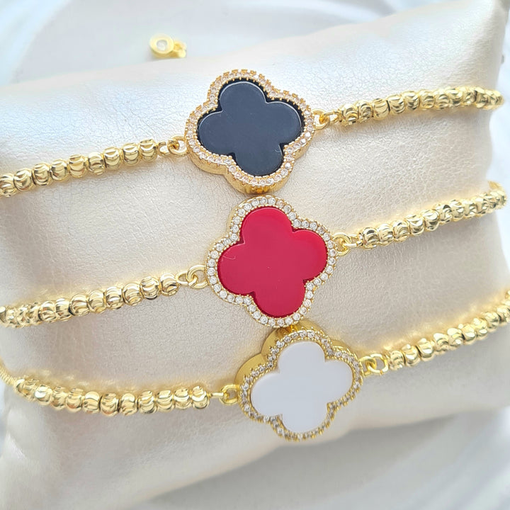 Pulseras ajustables en rodio con dije en forma de trébol y detalles en zircones