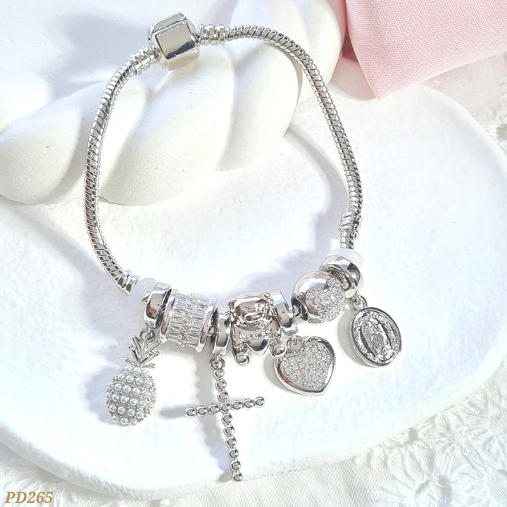 Pulso plateado piña/cruz/corazón/virgen PD265