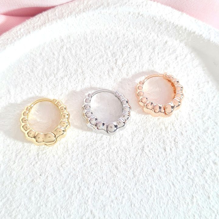 set en rodio con tres tamaños de candongas en tres oros y textura