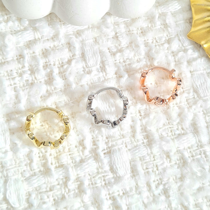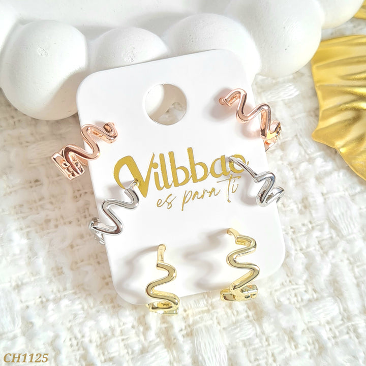set en rodio con tres candongas delgadas en zigzag con colores tres oros