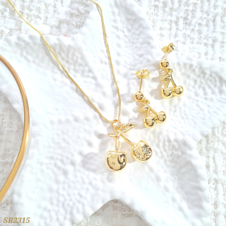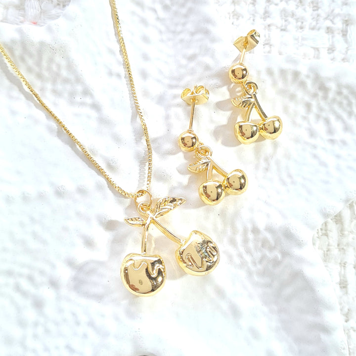 Set rodio, cadena ajustable, con dije en forma de cerezas y topos a juego