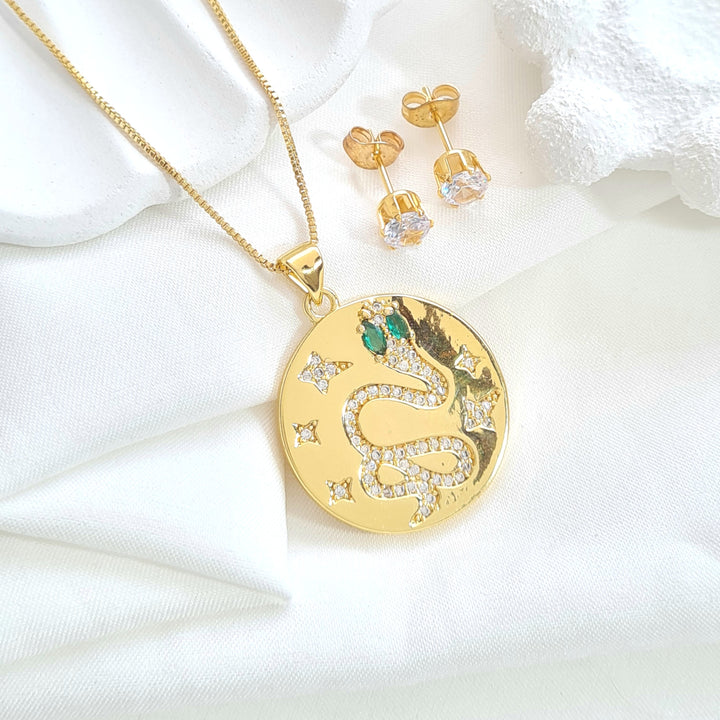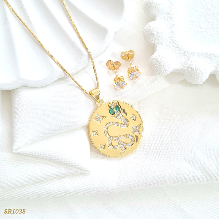 Set con dije de serpiente ojos verdes SR1038