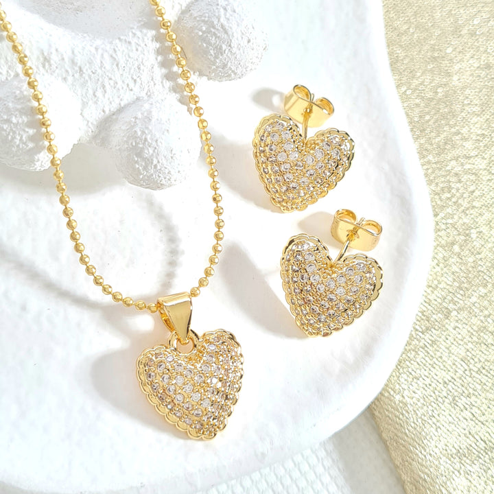 Set en rodio, cadena ajustar, dije en forma de corazón detalles en zircones con topos a juego