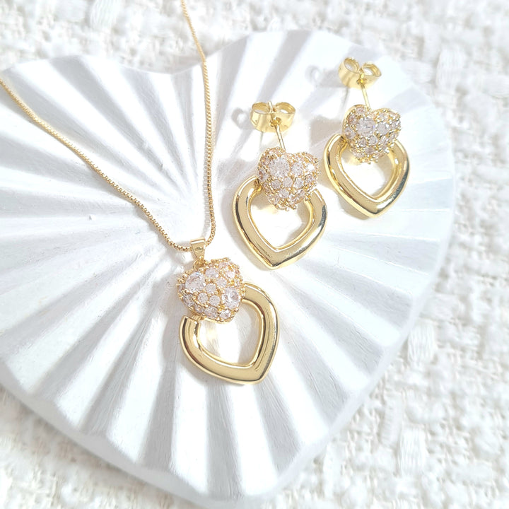 Set rodio cadena ajustable corazón topos a juego con detalles en zircones