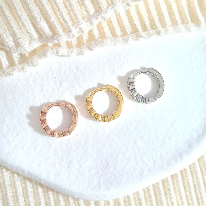 set en rodio con tres candongas con formas de corazón, colores tres oros y detalles en zircones