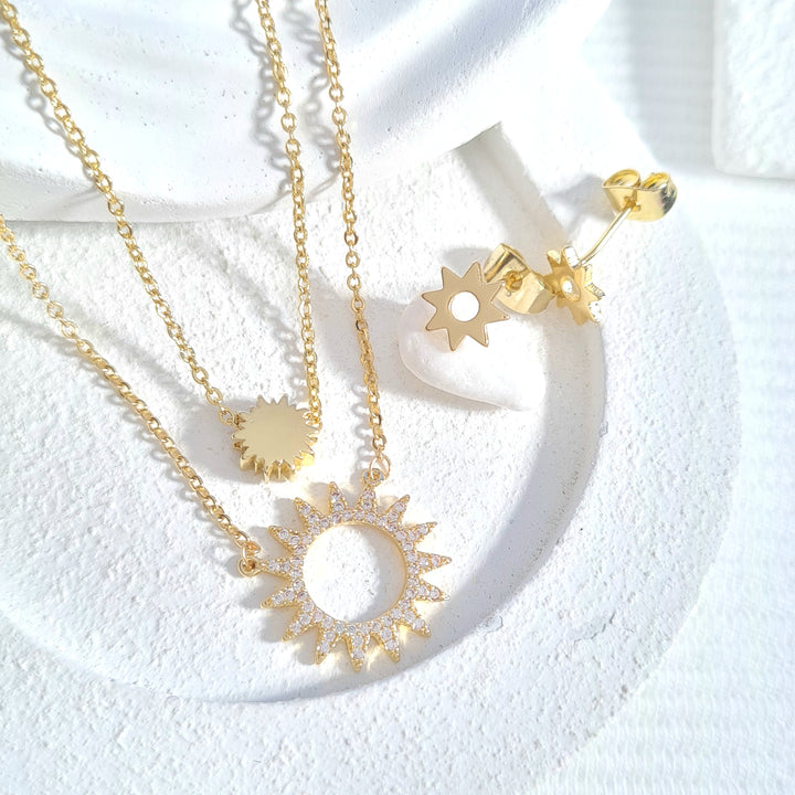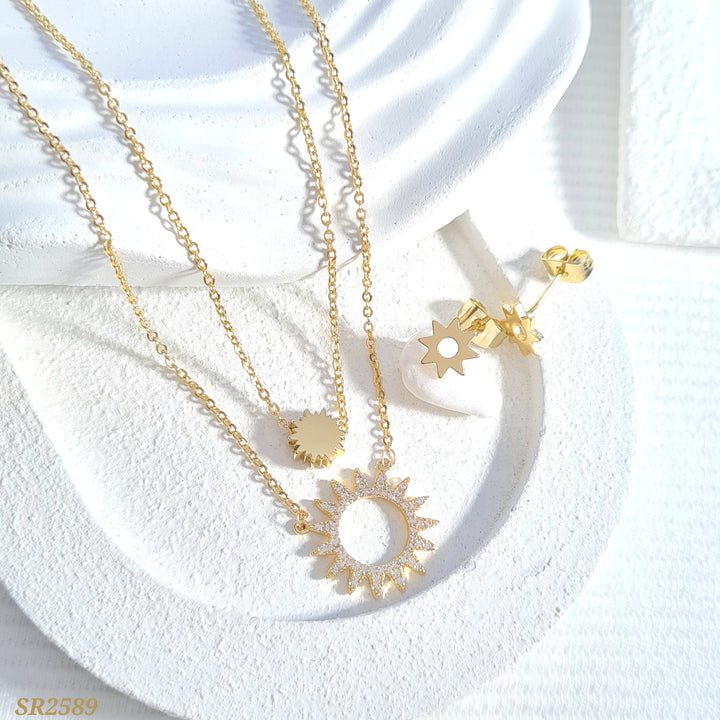 Set rodio doble con dijes en forma de soles y detalles en zircones con topos a juego