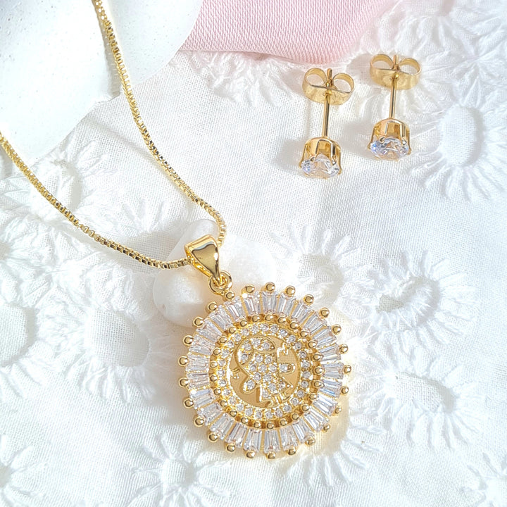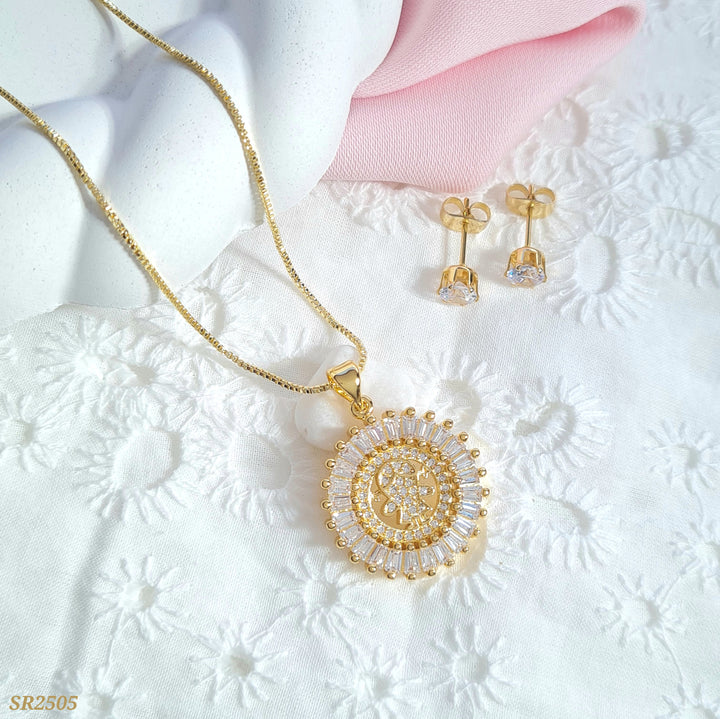 Set rodio cadena ajustable dije niña, detalles en zircones con topos a juego