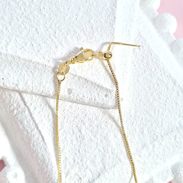 Cadena en rodio, sistema ajustable, dije en forma de oso con corazón rojo