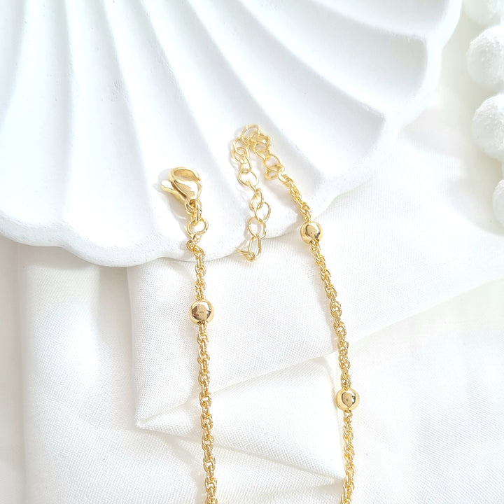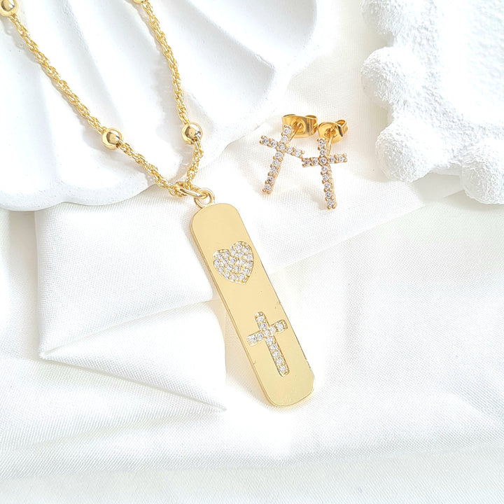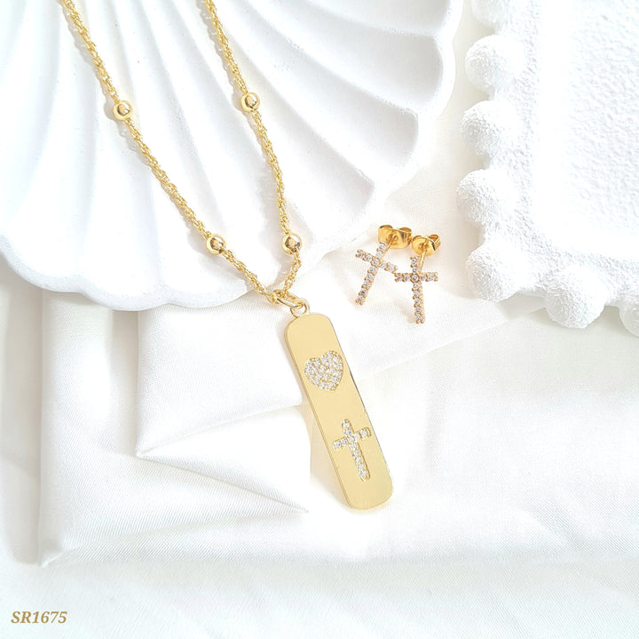 Set en rodio, dije con forma de triple trébol en el centro con topos zircón
