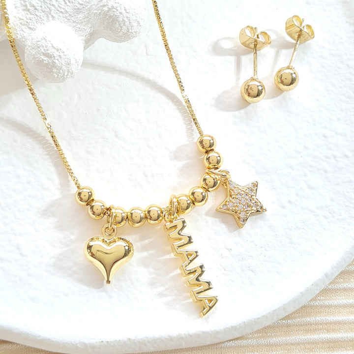 Set rodio cadena dije estrella/ mama/ corazón y topo balin SR2265