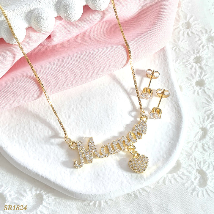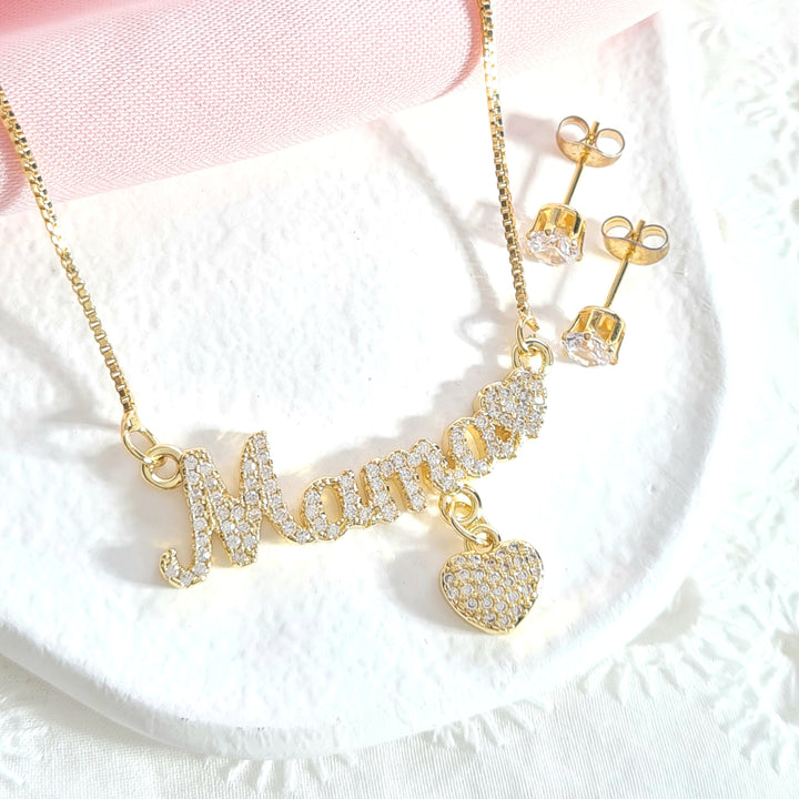 Set rodio cadena dije mama/corazón con detalles en zircones.