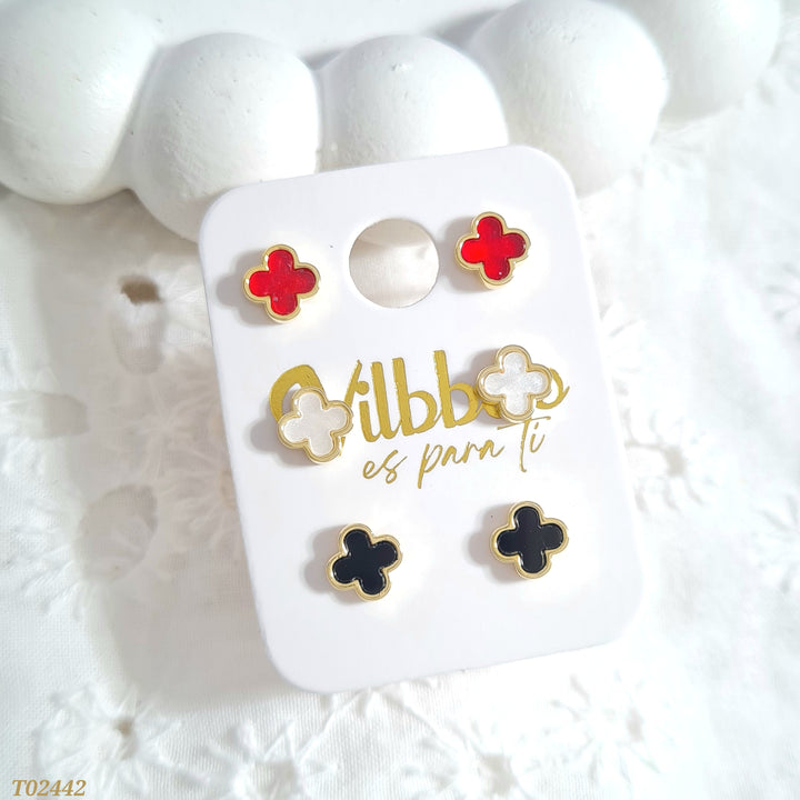 Set de topos en rodio con forma de trébol en colores