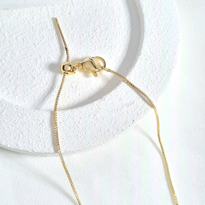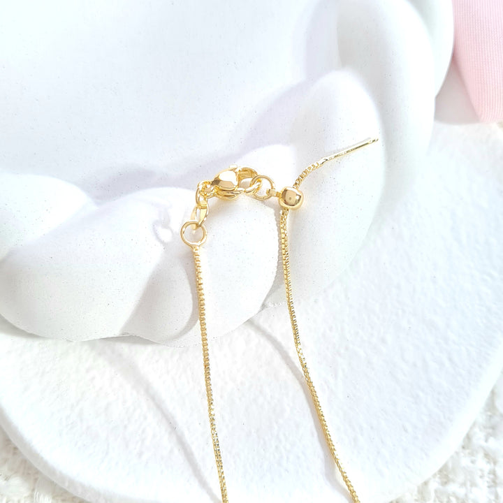 Set en rodio, cadena ajustable con dije en forma de trébol, con color, zircones en borde y topos a juego
