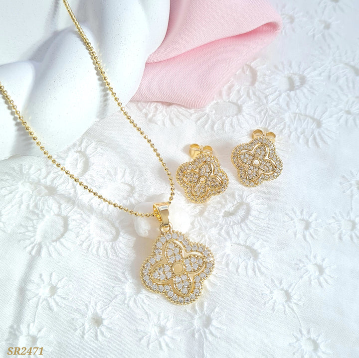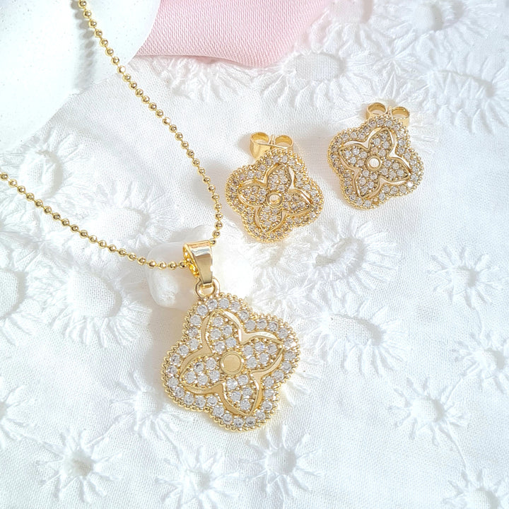 Set rodio, cadena ajustable, dije trébol topos a juego con detalles en zircones