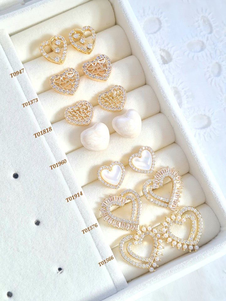 Topos en rodio con forma de corazones