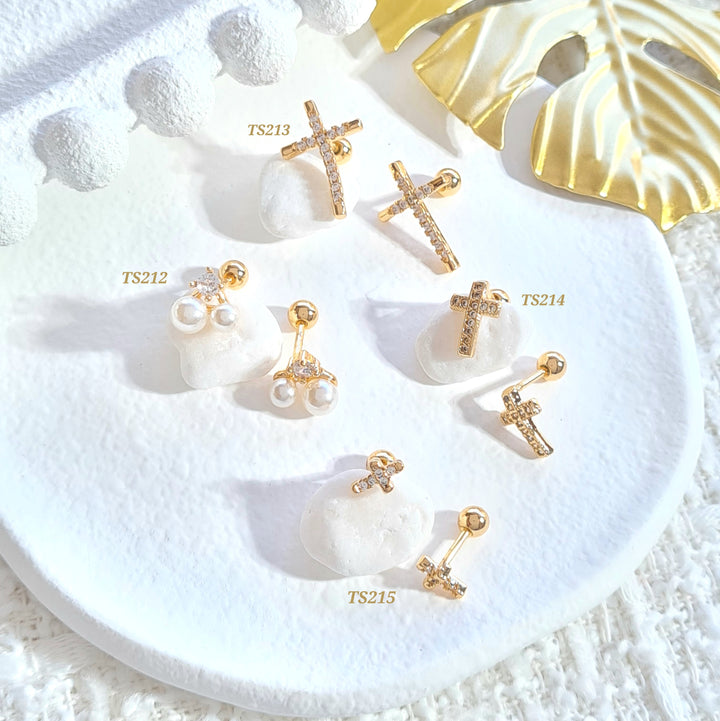 Topo de seguridad en rodio con detalles en zircones y perlas