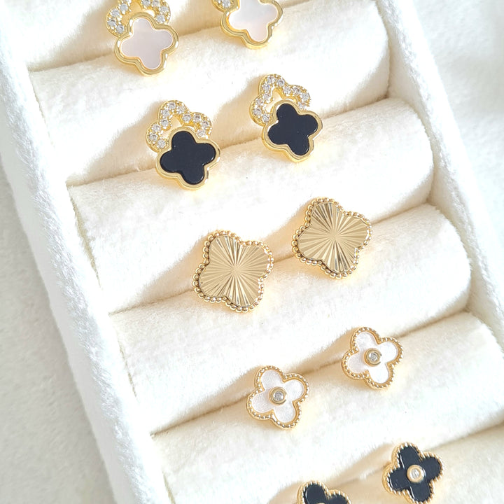 Topos en rodio con forma de trébol